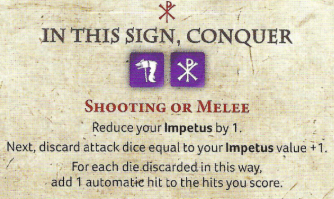 Then my five warriors charged in, using In This Sign, Conquer whilst I had a Impetus of 4. Since the Goths had two fatigue, I used both of them to increase the Roman armour to 6.