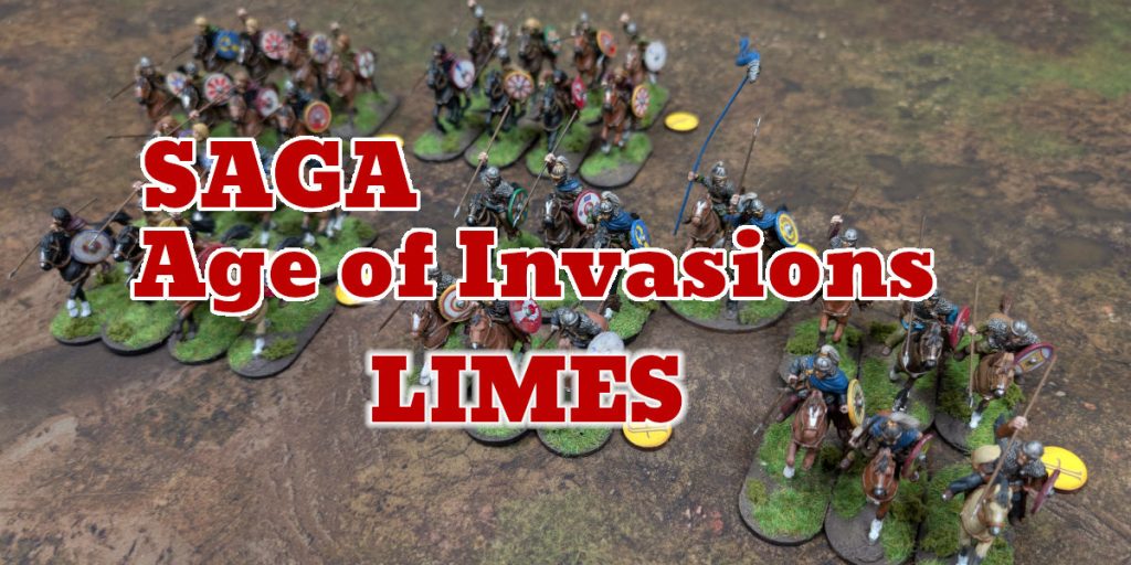Today was the first our first chance to try the Limes campaign rules in Saga Age of Invasions. It’s a relatively simple set of rules for a campaign between ‘Romans’ and ‘Barbarians’. The Romans can be represented by any civilised faction, and the Barbarians can be any less civilised factions. So it could be done as Anglo-Saxons versus Viking raiders (Age of Vikings) or Great Kingdoms versus Hordes (Age of Magic).
