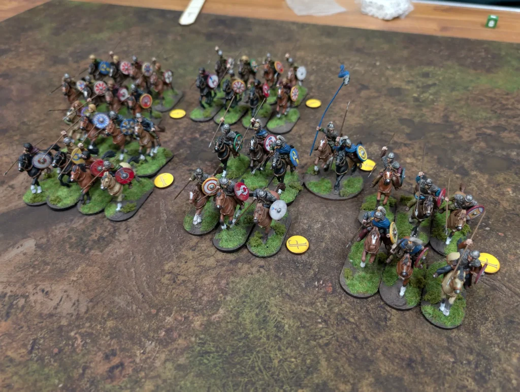 In this first game, the Goths organised a large army of 3 points of hearthguards and 3 points of warriors, plus a Warlord. All were mounted. There were organised into two units of 6 hearthguard, and 3 units of 8 warriors.