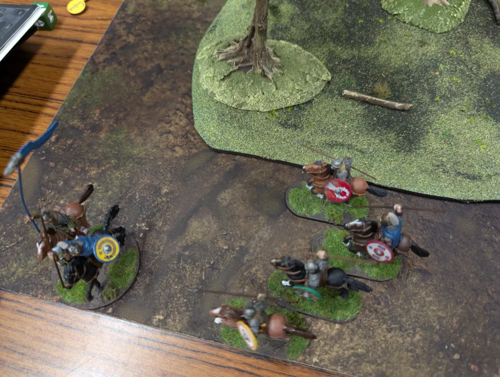 The Goths use Feud against my mounted hearthguard, then use Manoeuvre to move forward.