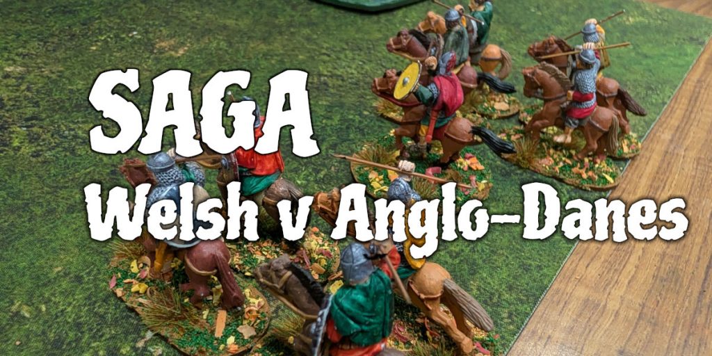Having just (mostly) finished painting a Strathclyde army for Saga: Age of Vikings, it was time to get them out onto the battlefield. I had the starter set from Gripping Beast, so a warlord, two units of mounted Hearthguard and two units of mounted warriors. To fill them out, I used two units of javelin levee from my Irish warband. In first edition of Saga, Strathclyde had their own battleboard. In this edition, they were a variation on the Welsh army.