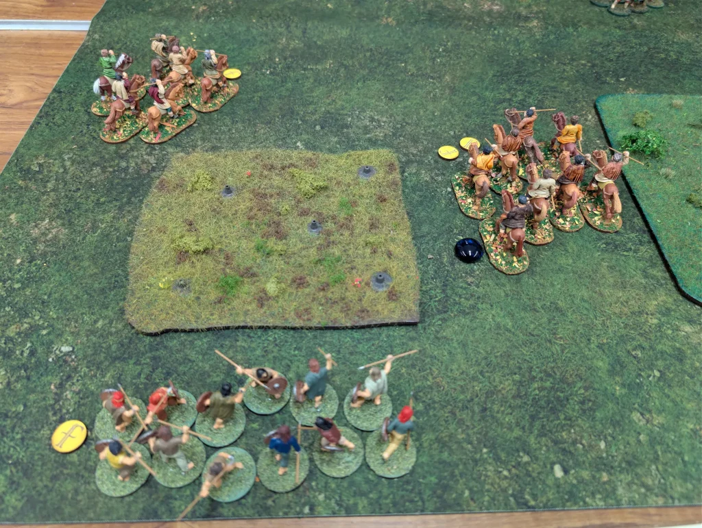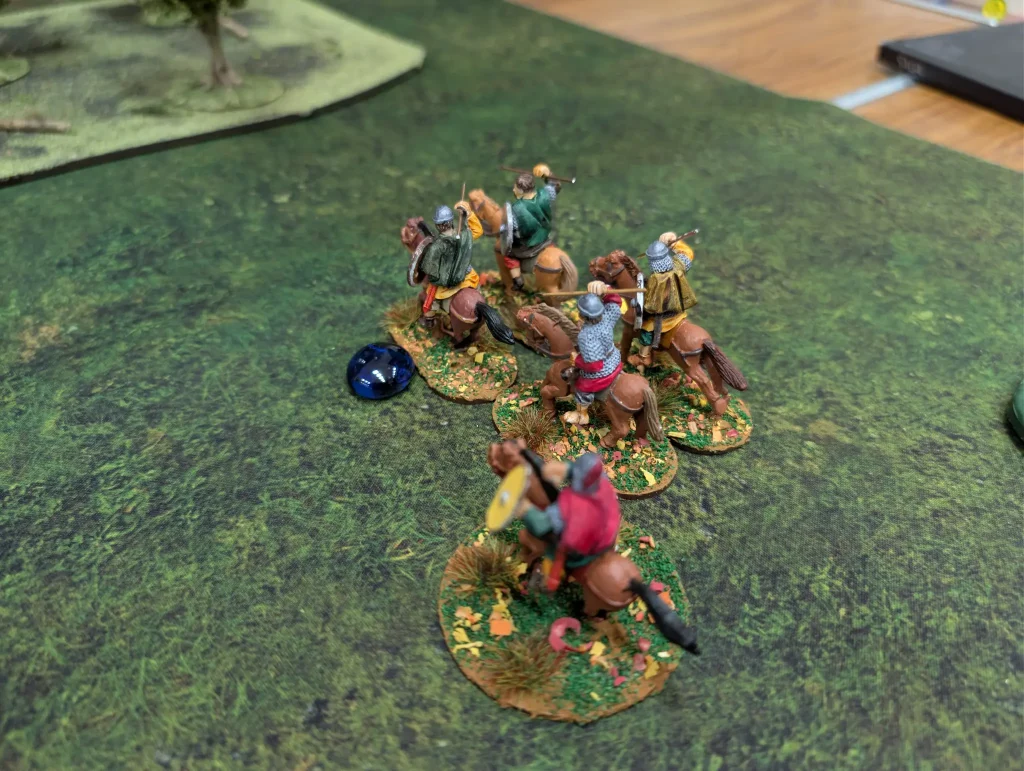 My levee are able to move up and chuck some javelins at the Danes trying to dominate the table centre , killing a hearthguard. One of my own hearthguard units moved up and grabbed the eastern most objective. Being mounted made it easy to grab, but getting it back was going to be slow.