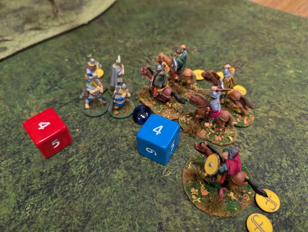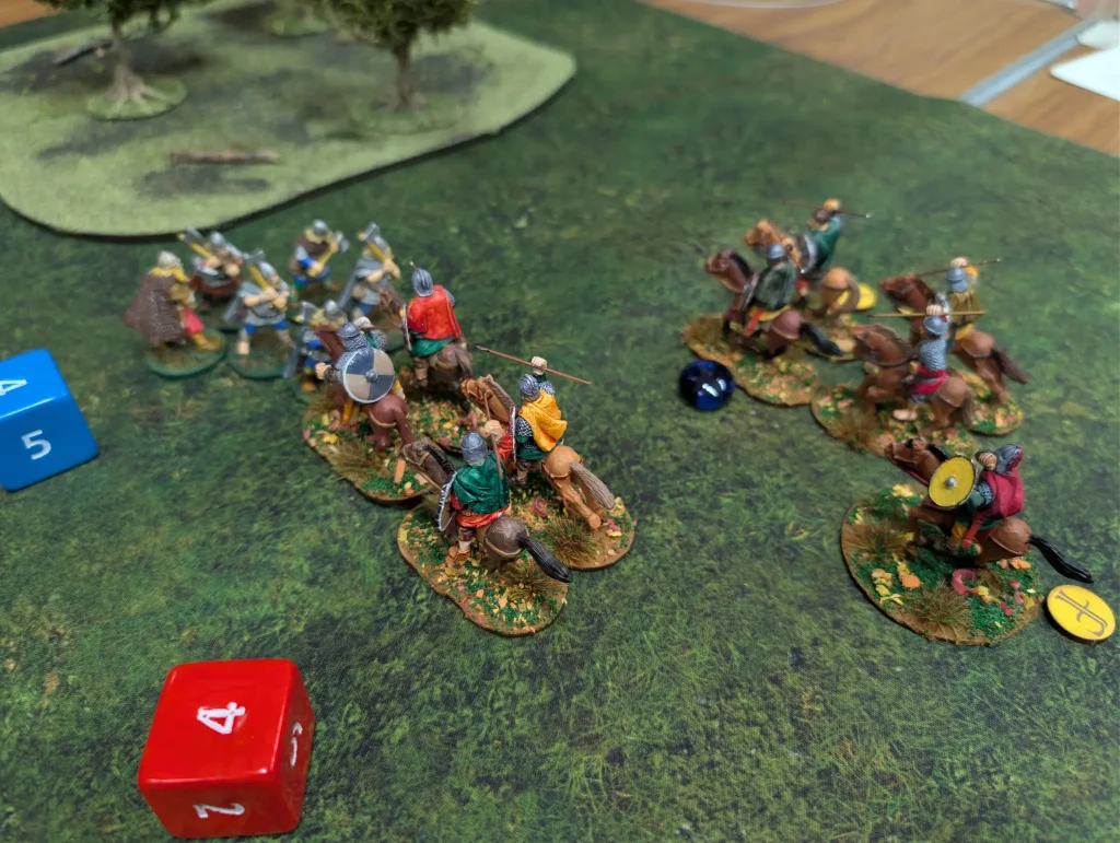 The Anglo-Danes did a lot better in this battle than they did against the Scots. In this scenario, the Welsh were very susceptible to fatigue. They had to move, which meant having to spend activations to move rather than rest, plus the cavalry was taking fatigue from simply moving an objective.
