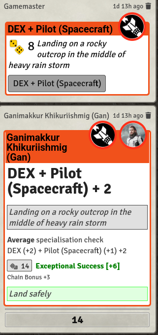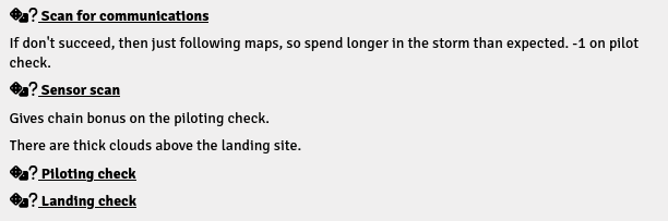 It did occur to me that it might be useful to be able to have a simple inline NPC description, without needing a full NPC actor. Just a name, species, UPP and maybe short list of skills. For those NPCs which aren’t expected to get into combat. Maybe that’s something for me to work on later.